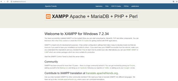 Es sollte sich nun das Dashboard öffnen (s. Abbildung 2.5). Der Apache-Server arbeitet also korrekt.