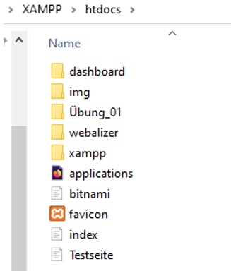 In Zukunft werden Sie viele Übungen zu PHP umsetzen. Da ist es ratsam, zu jeder Übung bzw. zu jedem größeren Projekt, einen eigenen Ordner anzulegen. Wie hier z.B. Übung_01.