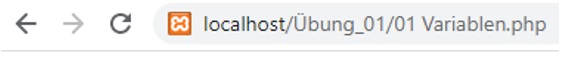 Um dann die PHP-Datei laden zu können, muss entsprechend der URL-Pfad angepasst werden. Beispiel: In dem Unterverzeichnis Übung_01 befindet sich eine PHP-Datei namens 01 Variablen.php.