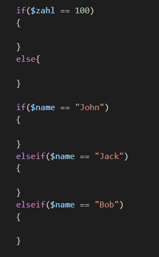 Die Syntax von PHP ähnelt der Syntax von C bzw. C++ sehr stark. If-Abfragen werden auf die selbe Art wie in C verfasst. Der Sinn und Zweck von if-Abfragen sollte Ihnen bereits bekannt sein. Schauen Sie sich die Beispiele auf den folgenden Abbildungen an.