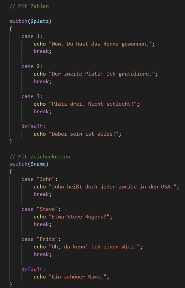 Zur Fallunterscheidung bietet sich auch oft die Switch-Case-Abfrage an:
