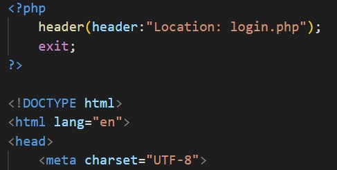 Zur Vermeidung dieses Problems implementieren wir in der Datei welcome.php oberhalb des HTML-Codes eine automatische Weiterleitung, die den Benutzer zurück auf die Login-Seite führt. Siehe untere Abbildung.