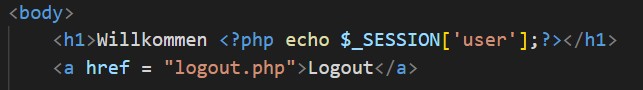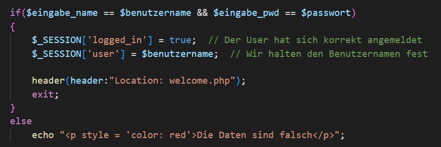 Gibt der User die korrekten Anmeldedaten ein, nutzen wir die Variable $_SESSION, um dieses Ereignis festzuhalten.